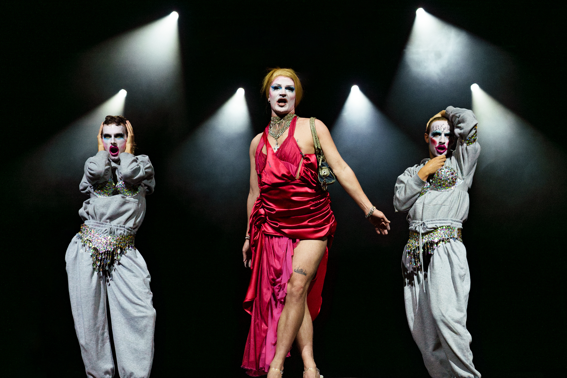 Jacob Samuel & Courtney Deyn (Concept, Direction, Composition), Yen-Ching Lin, Ed Mitchell, James Olive, Lewis Walker, Boston Gallagher, Belen Leroux, Courtney Deyn (Performance), Scilla Rajalin, Oscar Li, Becky Namguads (Rehearsal Direction), Laurie Loads (Lighting Design), Lambdog1066 (Costume Design),Jal Joshua, D’Angelo Castro (R&D), Production 2023 (Fraser Buchanan, Artsadmin)